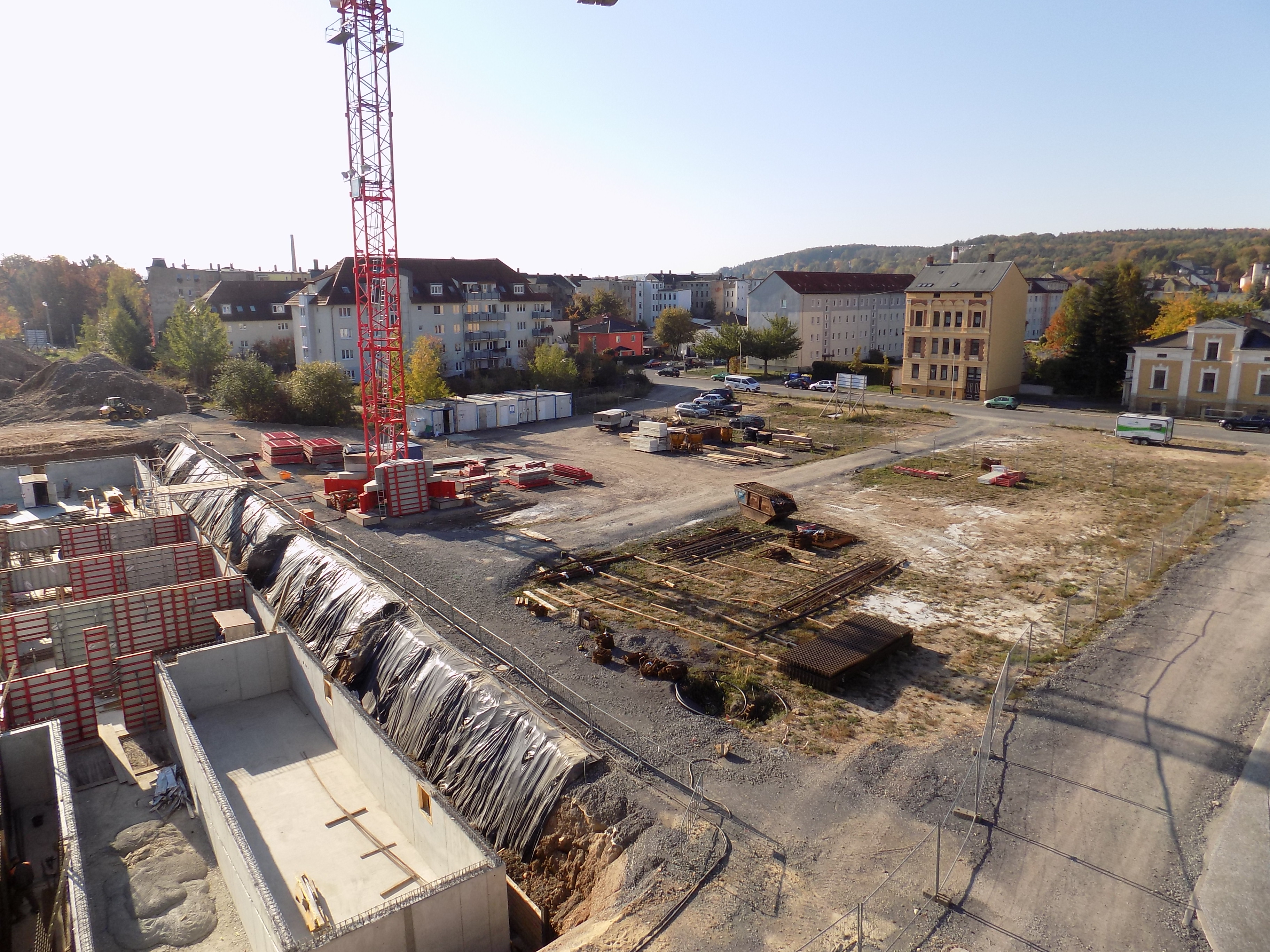 Gera/Heinrichsgrün: Der Bau der weiteren 36 Eigentumswohnungen im HeinrichsQuartier nimmt Konturen an. Ganz offensichtlich zeichnen sich die Räumlichkeiten der Tiefgarage und Nebenräume ab. Nicht so offensichtlich sichtbar, jedoch wesentlich interessanter ist, dass das Gebäude mit einer sogenannten „Weißen Wanne“ errichtet wird. Mit der Verwendung von wasserundurchlässigem Beton wird so dem Hochwasserschutz sowie dem Grundwasserniveau in Flussnähe Rechnung getragen.